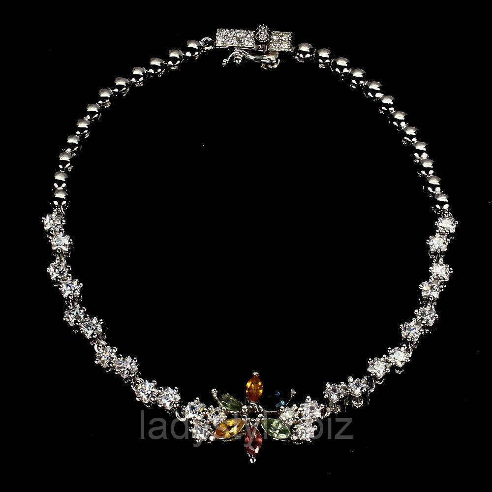 Ажурний срібний браслет із кольоровими сапфірами та цирконами