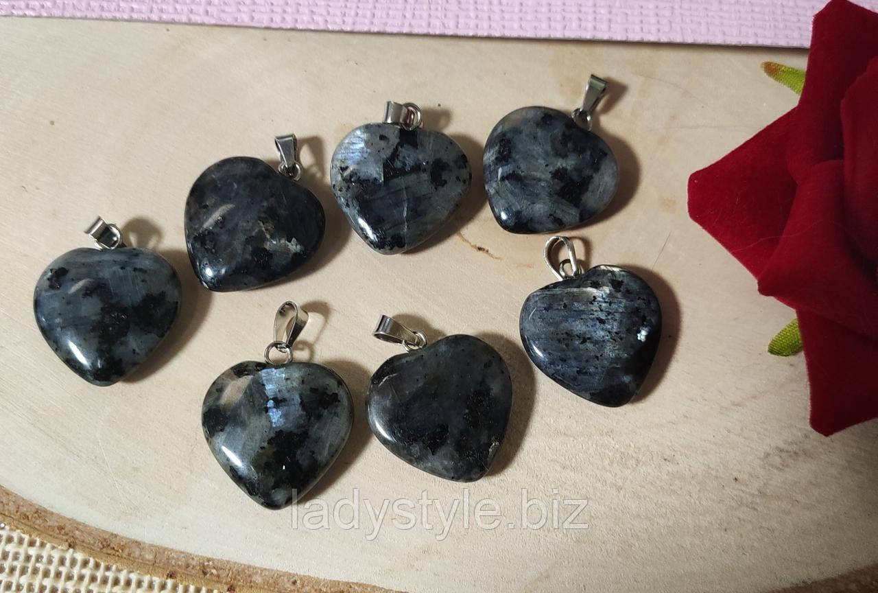 Кулон, підвіс сердечко з ларвікітом на шнурку